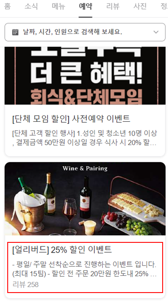 빕스에서는 네이버예약으로 '얼리버드' 예약을 하는 고객에게 25% 할인 혜택을 제공하고 있습니다.